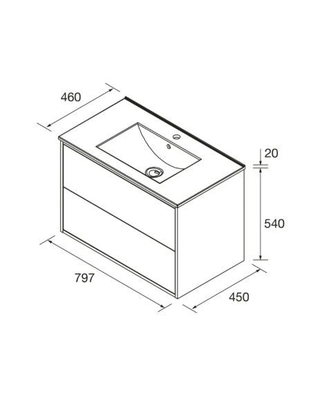 Comprimento 797mm | Profundidade 450mm | Altura 405mm