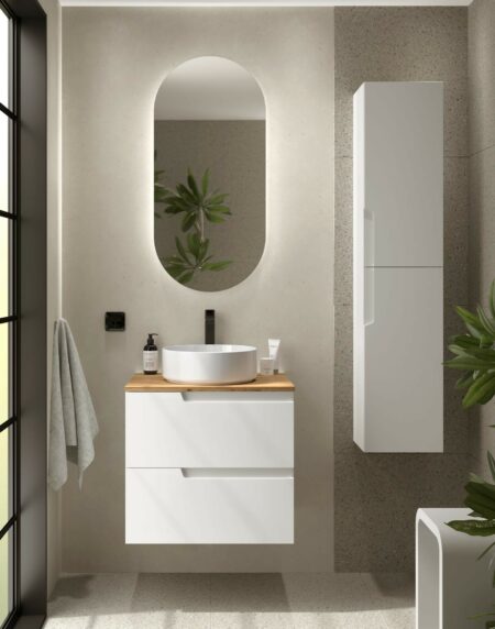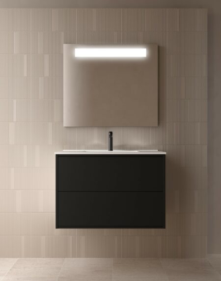 Esta coleção de móveis para casa de banho testa novas texturas, com as suas frentes maquinadas com ranhuras verticais, criando um padrão rítmico e dando a sensação de movimento. Os pequenos pormenores, como o puxador, dão à nossa casa de banho um toque e estilo personalizados, conforme o modelo e o acabamento escolhido.