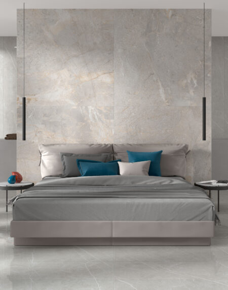 “Endless by Margres é composta por cinco mármores diferentes entre si e que nos remetem para diferentes universos. Beccia Capraia, da zona de Carrara, com uma dualidade de veios cheios de nuances de cor e pequenas incorporações cristal, num fundo branco.”