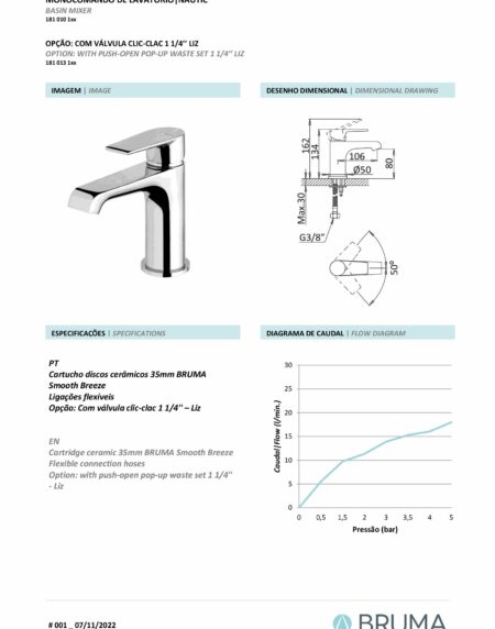 • Desempenho do fluxo: saída B 27 l/min, saída C 27 l/min