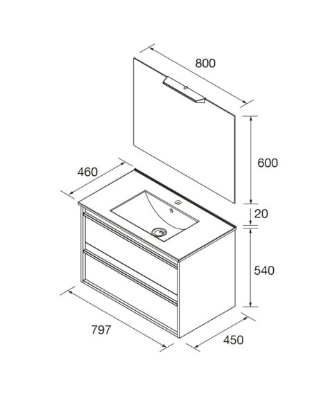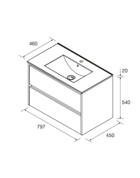 O conjunto inclui móvel e pia lavatório fabricado em porcelana branca que garante máxima resistência ao desgaste.