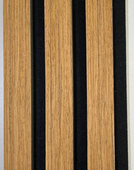 • Placas em Feltro acústico 100% proveniente de matérias reciclados com Ripas em MDF revestidas a folha de madeira natural