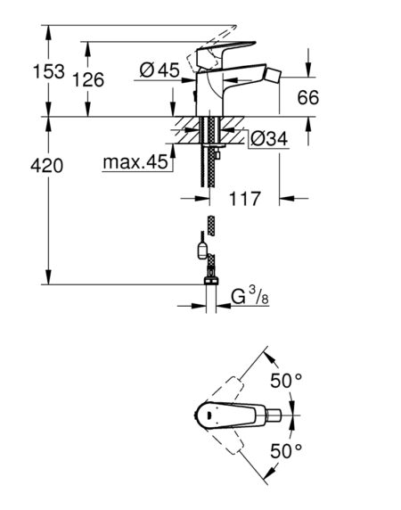 BauEdge Monocomando de lavatório 1/2″ Tamanho S com clic clac 23895001 cromada